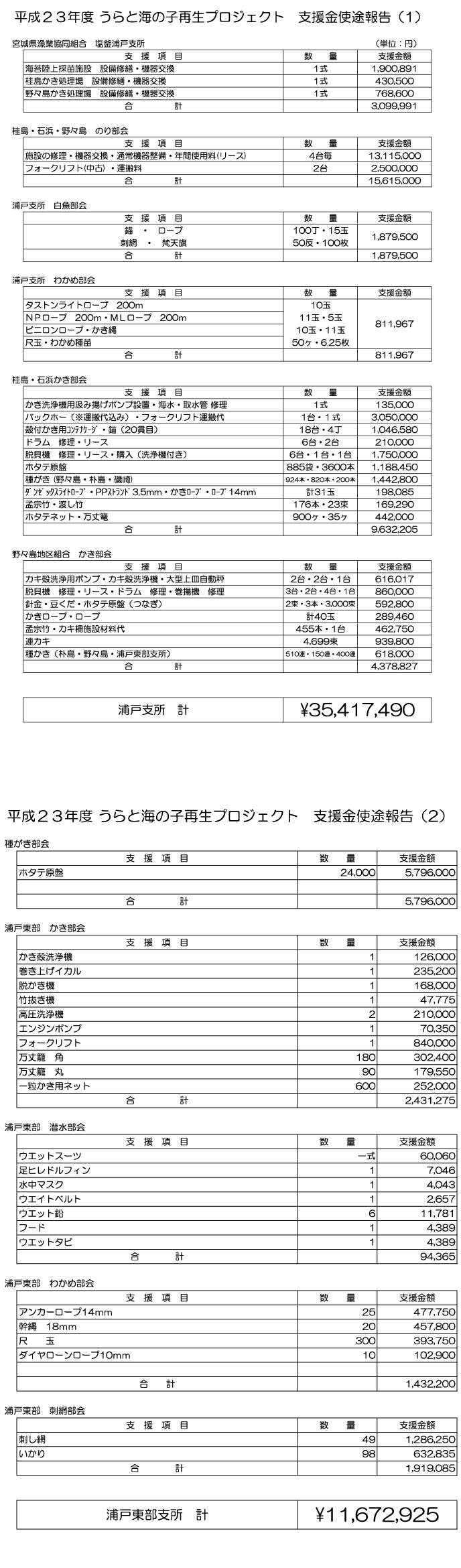 一般社団法人 うらと海の子再生プロジェクト 支援金使途報告(H23)