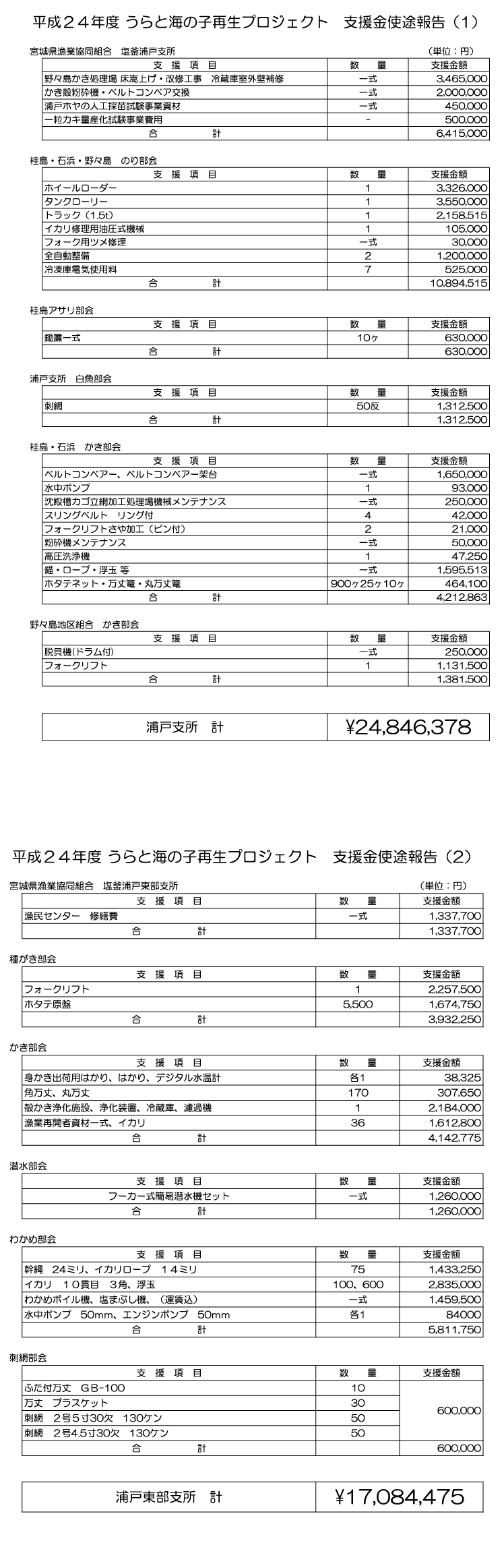 一般社団法人 うらと海の子再生プロジェクト 支援金使途報告(H24)